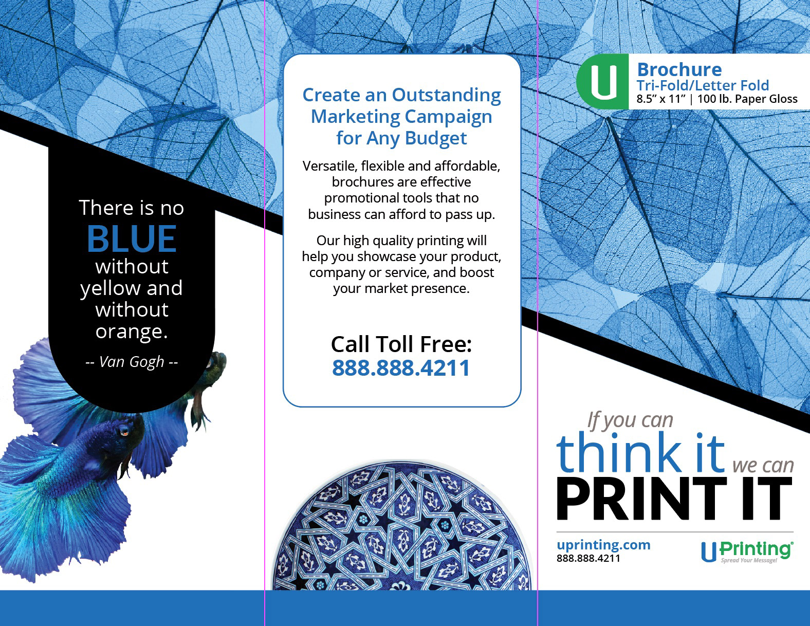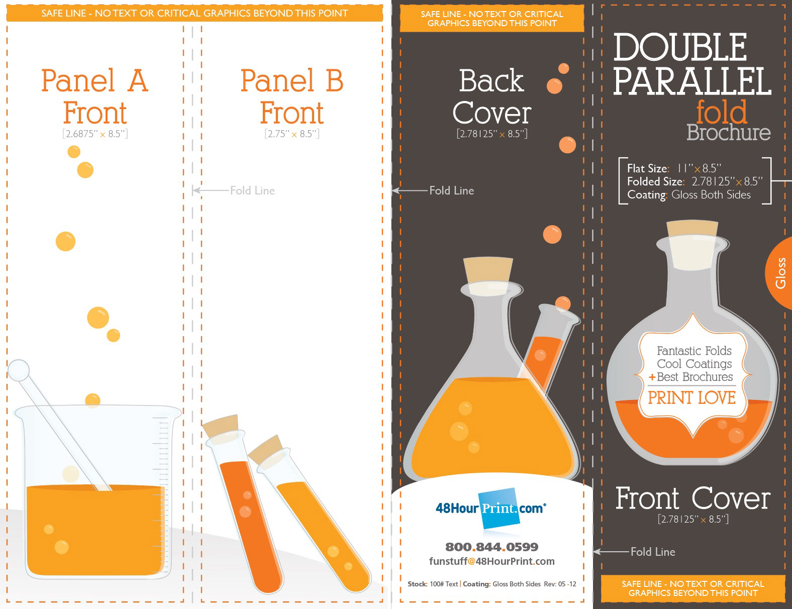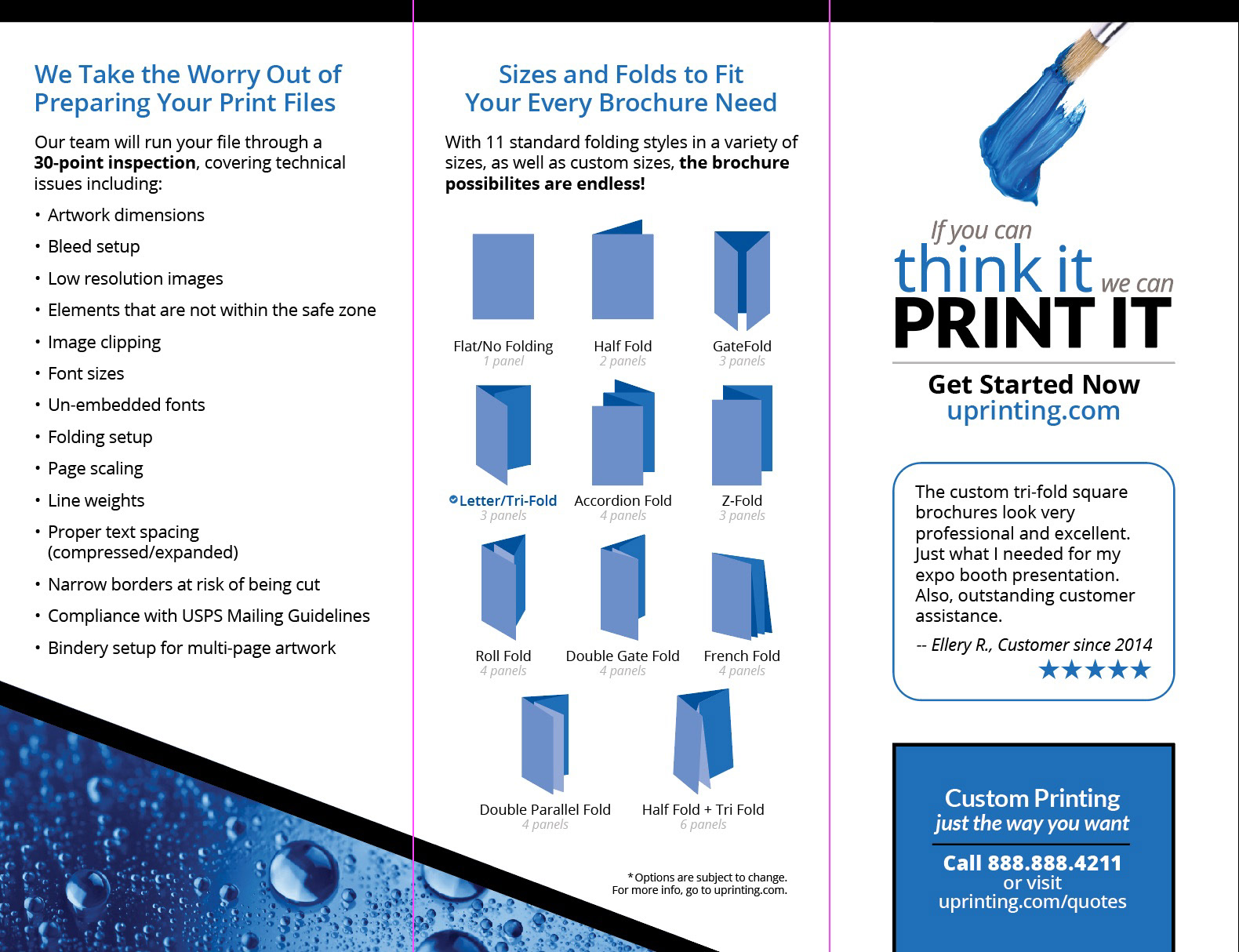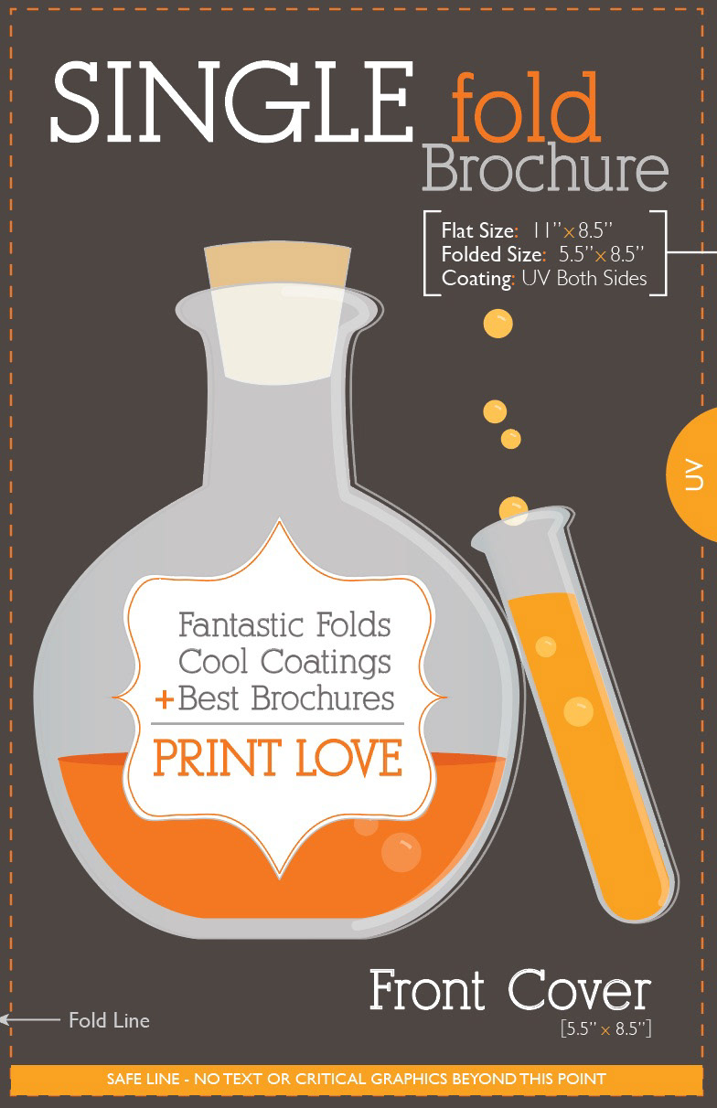 Branded, customer-focused resource providing file setup templates in real-life print samples of 7 brochure styles