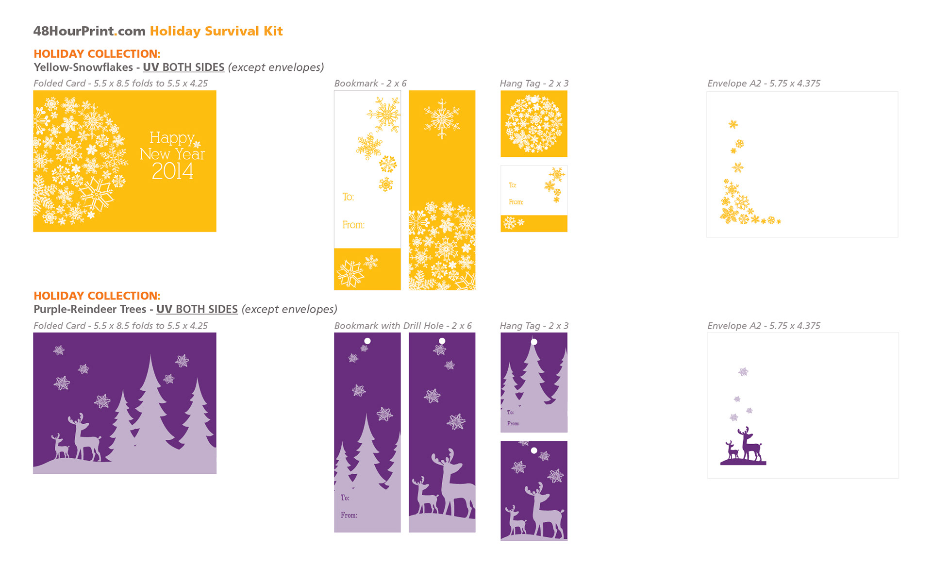 Holiday: greeting cards, envelopes, hang tags, custom die cut stickers, door hanger